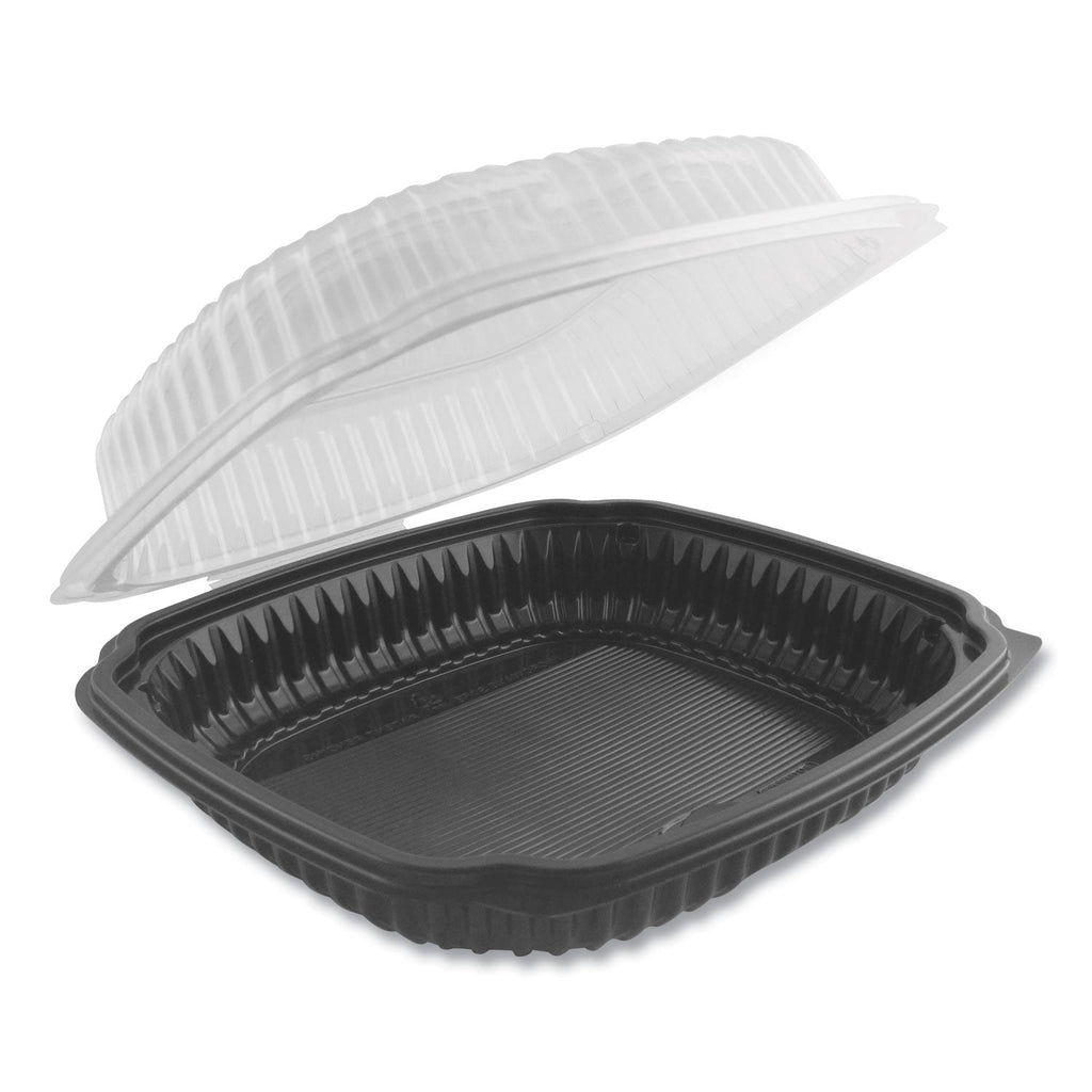 ANCHOR PACKAGING Culinary Lites Microwavable Container, 47.5 oz, 10.56 x 9.98 x 3.18, Clear/Black, Plastic, 100/Carton