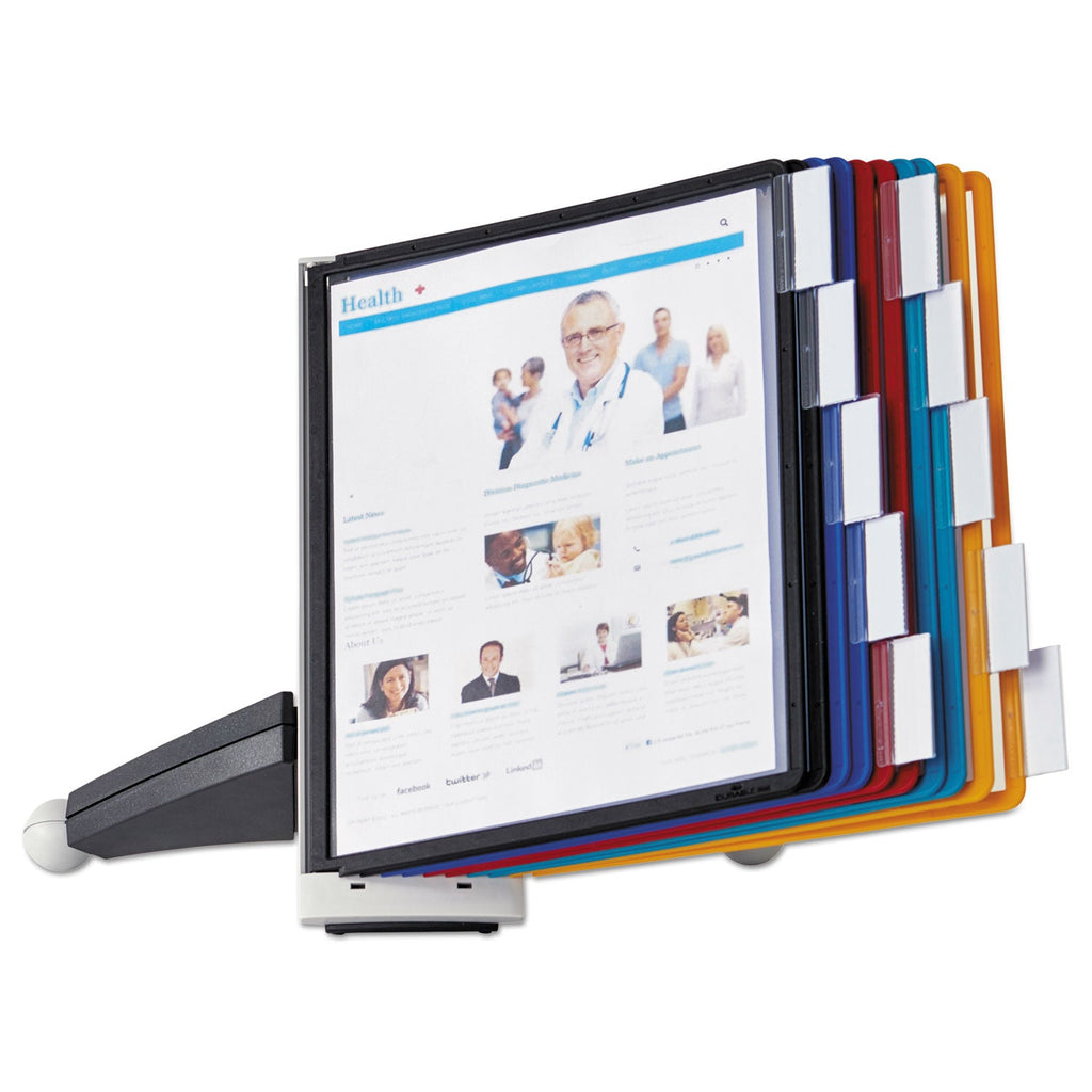 - Includes desk stand, 10 sleeves and 10 snap-on tabs.