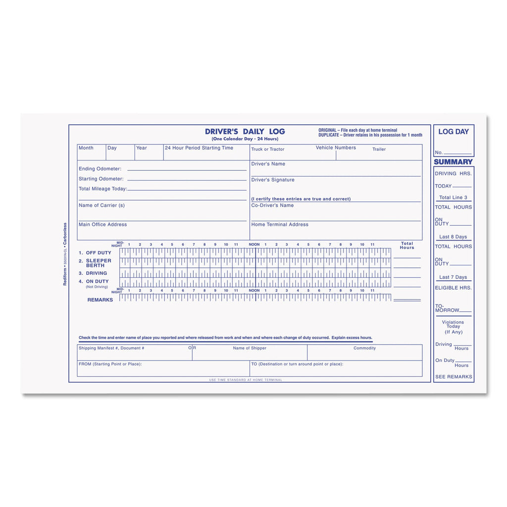 - Vehicle report on back of original with odometer start and finish, mileage today, time in, stops, time out, layover time, daily vehicle inspection report.