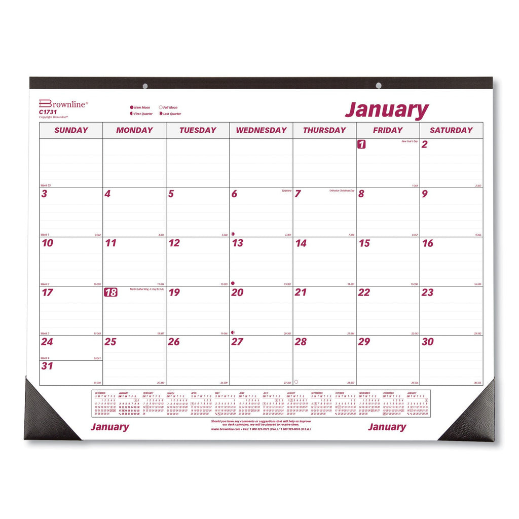 REDIFORM OFFICE PRODUCTS Monthly Desk Pad Calendar, 22 x 17, White/Burgundy Sheets, Black Binding, Black Corners, 12-Month (Jan to Dec): 2024